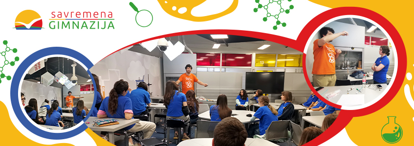 Imajući u vidu lepe odnose sa kolegama iz Savremene gimnazije, rado je prihvatio da uoči samog festivala dođe u Savremenu i učenicima prvog razreda Kombinovanog programa predstavi neke zanimljive eksperimente.