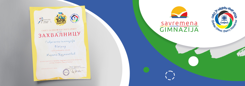 Savremena gimnazija već nekoliko godina uspešno sarađuje sa Savezom za školski sport Srbije u okviru projekta „Đak reporter”. U svetlu toga, Savez je Savremenoj gimnaziji i Marini Kuzmanović, profesorki srpskog jezika i književnosti i rukovodiocu novinarske sekcije, dodelio zahvalnicu za konstruktivnu saradnju, podršku i izuzetan doprinos razvoju projekta „Đak reporter”.