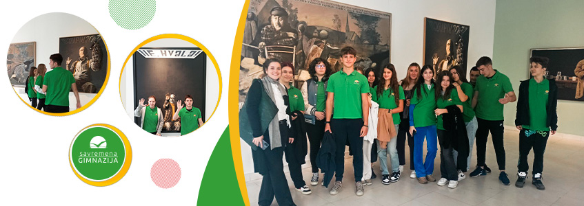 Savremeni gimnazijalci su u oktobru zajedno sa profesorkom likovne kulture Zoranom Milićević bili na izložbi jednog od naših najpoznatijih slikara Miće Popovića – u pitanju je izložba pod nazivom Slikarstvo permanentne pobune.
