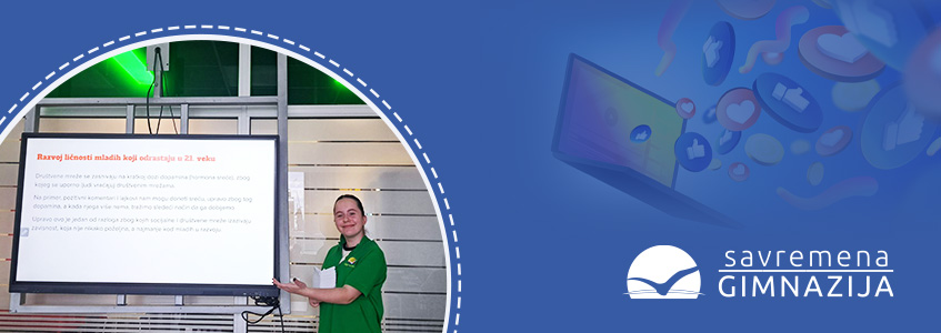 Nastavnice srpskog jezika i književnosti, Vanja Šimpraga i Marina Kuzmanović, zajedno sa nastavnicom psihologije, Tamarom Čukić, sprovele su inovativan projekat na časovima predmeta Jezik, mediji i kultura sa učenicima drugog razreda. Fokus projekta inspirisanog gledanjem filma „The Social Dilemma” bio je na analizi pozitivnih i negativnih uticaja društvenih mreža na razvoj ličnosti pojedinca.