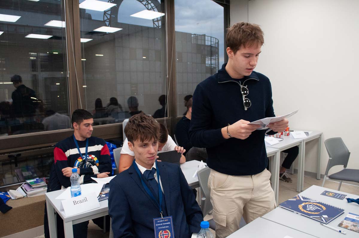 Tokom predavanja učenici su imali priliku da se upoznaju са LEAMUN konferencijom, jedinstvenom simulacijom rada Ujedinjenih nacija koju organizuju studenti. Naši gimnazijalci su saznali zašto je učešće u ovakvom programu dragoceno – od usvajanja znanja o globalnoj politici, ekonomiji i društvenim izazovima, do razvijanja veština pregovaranja, javnog nastupa, istraživanja i diplomatske komunikacije.