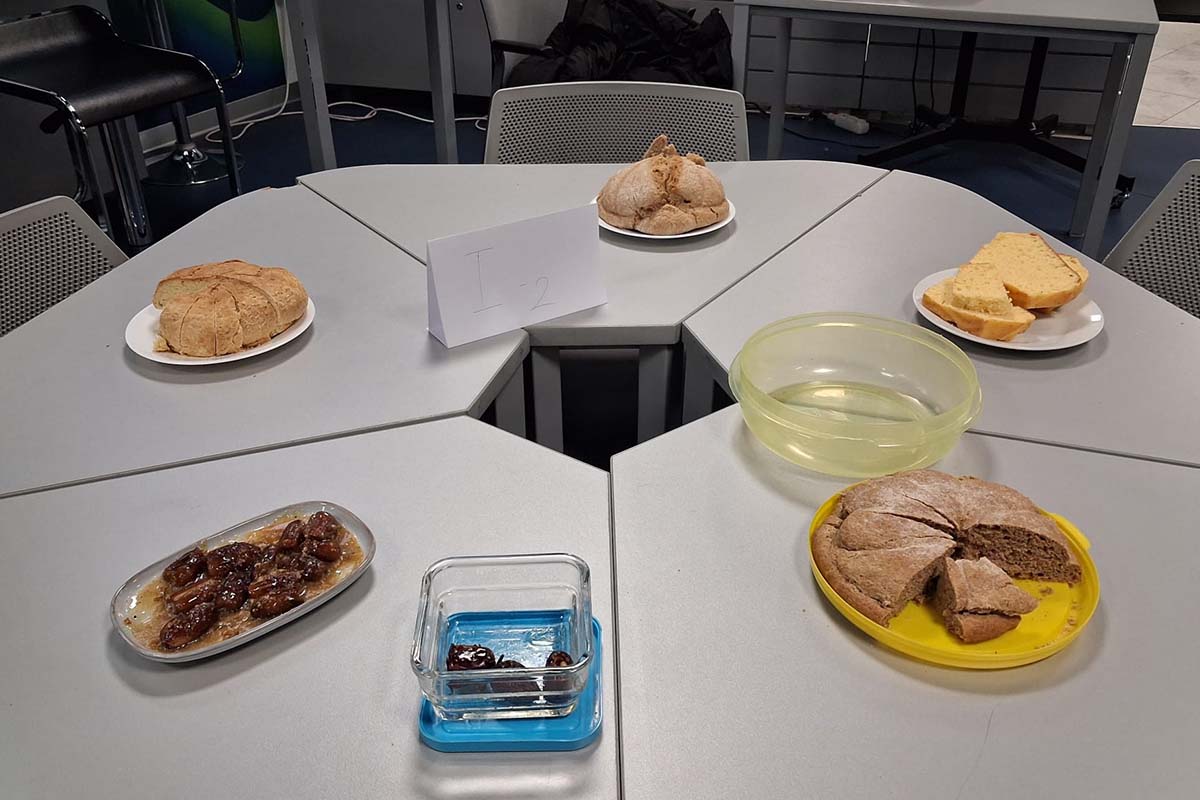 Na trpezama su se našli različiti oblici rimskog hleba, pržena testa, kao i punjene urme – poslastica koja je bila posebno cenjena u antičkom Rimu. Učenici su sa velikim entuzijazmom pristupili radu, istražujući sastojke, način pripreme i značaj hrane u svakodnevnom životu starih Rimljana. Pogledajte jedan od recepata.