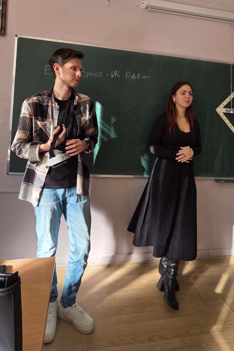 Profesorka Nađa Hlađik, zajedno sa nastavnikom računarstva i informatike i nastavnicom psihologije Dinom Ebel, gostovala je u Osnovnoj školi „Petar Petrović Njegoš“, gde su održali interaktivno predavanje pod nazivom „Poetični kosmos kroz virtuelnu realnost“.