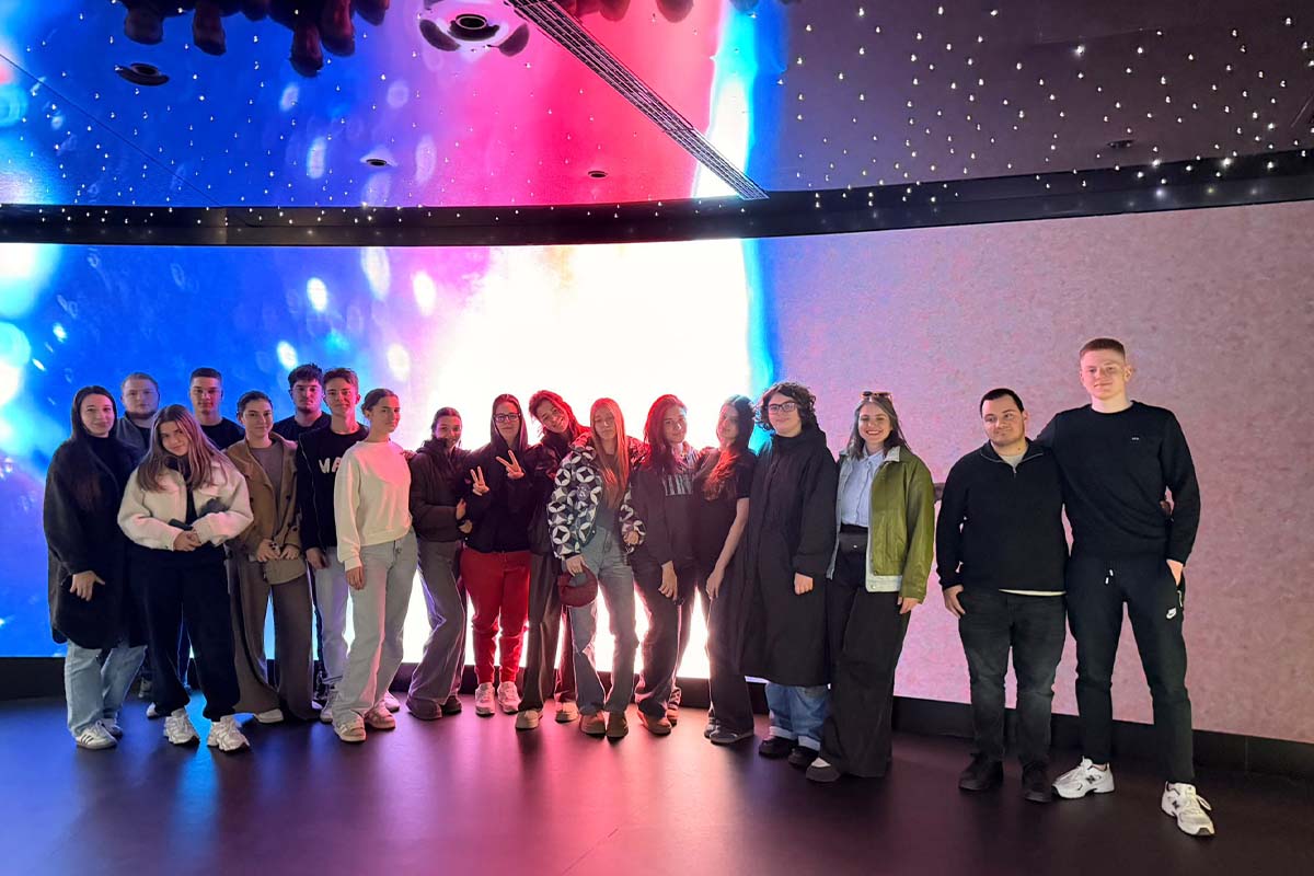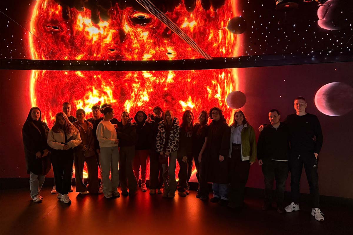 U okviru interdisciplinarnog projekta „Daleki svetovi: nauka koja inspiriše umetnost – uslovi za život u svemiru i njihova umetnička interpretacija“, učenici IV godine posetili su Palatu nauke. U pratnji profesorke fizike Jelene Stamenković i profesorke umetnosti i dizajna Zorane Milićević, prisustvovali su savremenoj 360° projekciji „Daleki svetovi – ima li vanzemaljskog života?“, koja ih je uvela u fascinantan svet savremenih kosmičkih istraživanja.